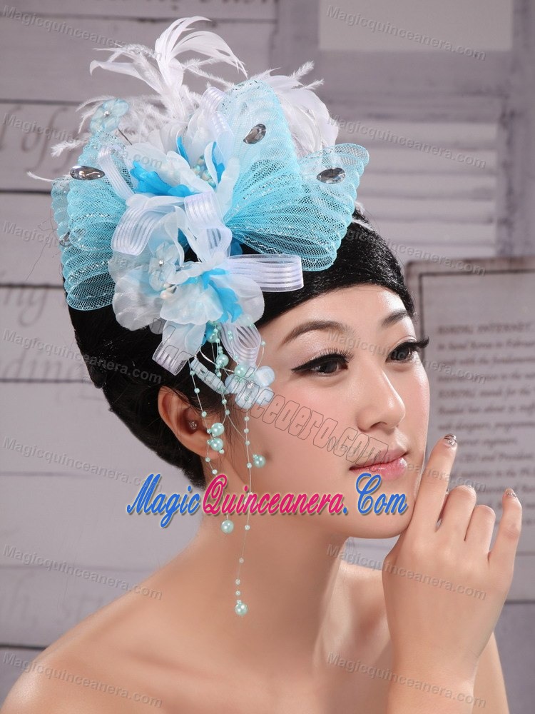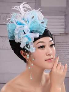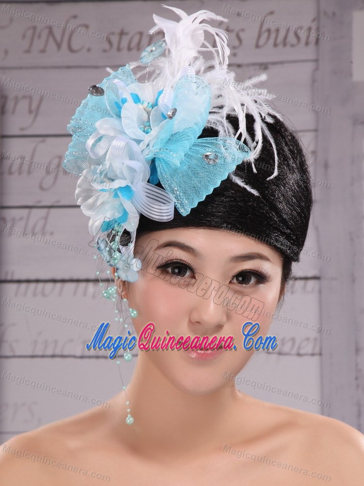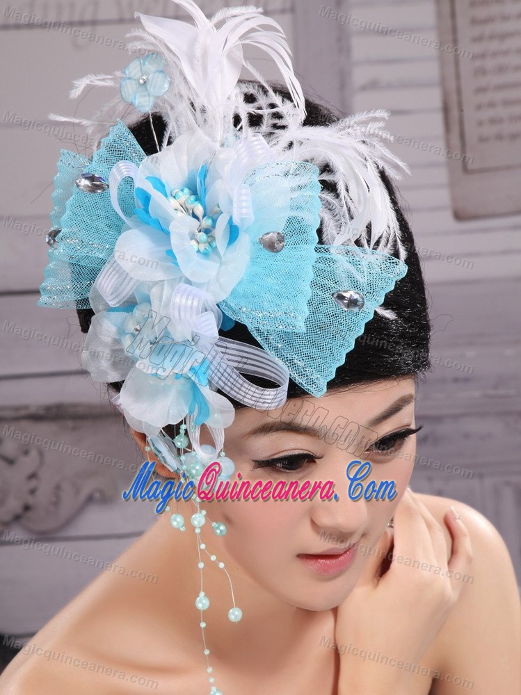 Feather and Rhinestones Decorate Aqua Blue Headpieces