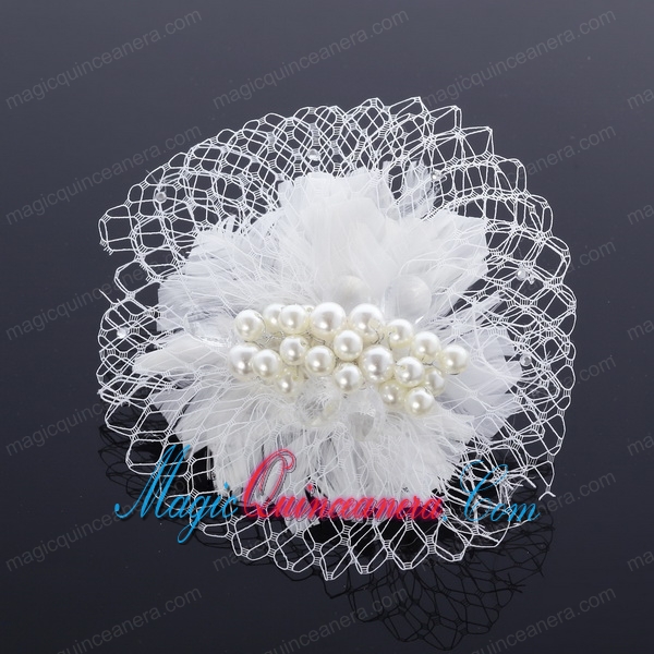 Feather and Tulle Imitation Pearls Feather Flower Hairpin for Outdoor