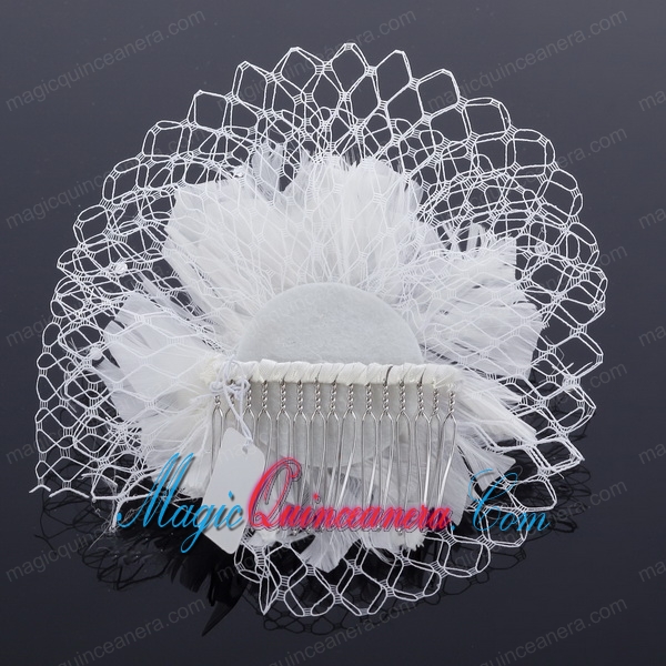 , Feather and Tulle Imitation Pearls Feather Flower Hairpin for Outdoor