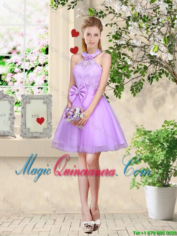 angel dama quinceanera gowns for homecoming party, Feminine Halter Top Laced and Bowknot Dama Dresses in Lavender