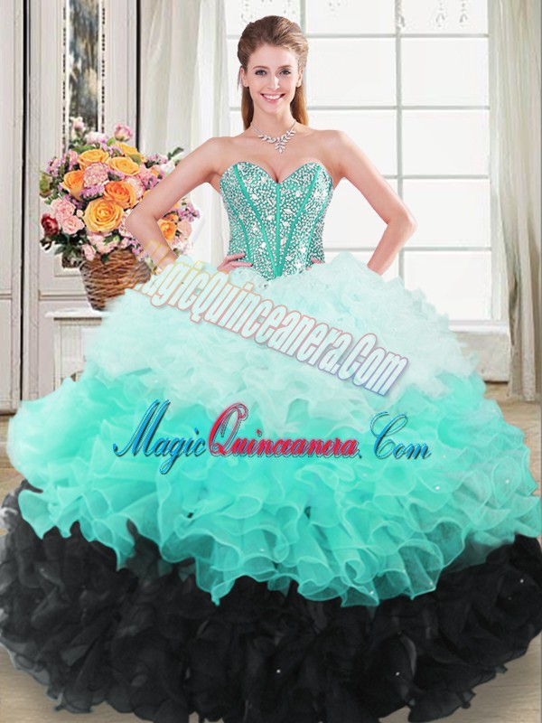 Fine Multi-color Sweetheart Neckline Beading and Ruffled Layers Ball Gown Prom Dress Sleeveless Lace Up