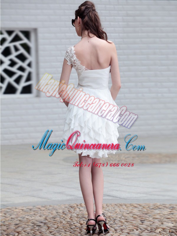 Fine One Shoulder White Zipper Mother of the Bride Dress Lace and Ruffles Sleeveless Mini Length - Magic Quinceanera