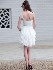 Fine One Shoulder White Zipper Mother of the Bride Dress Lace and Ruffles Sleeveless Mini Length