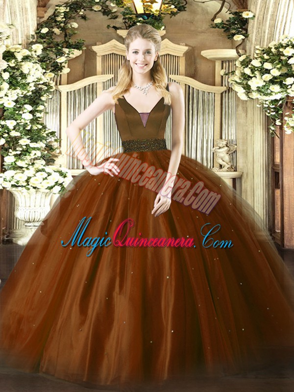 Fine Tulle Sleeveless Floor Length Quinceanera Gown and Beading