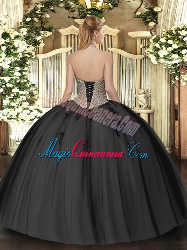 Fitting Floor Length Lavender Vestidos de Quinceanera Halter Top Sleeveless Lace Up