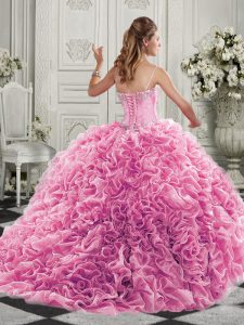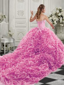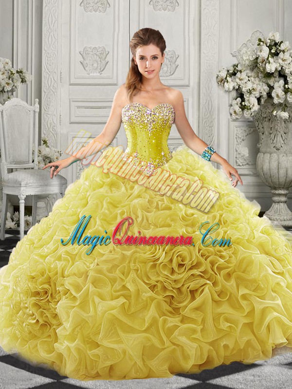 Fitting Yellow Sleeveless Beading and Ruffles Lace Up Quinceanera Gowns