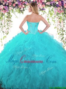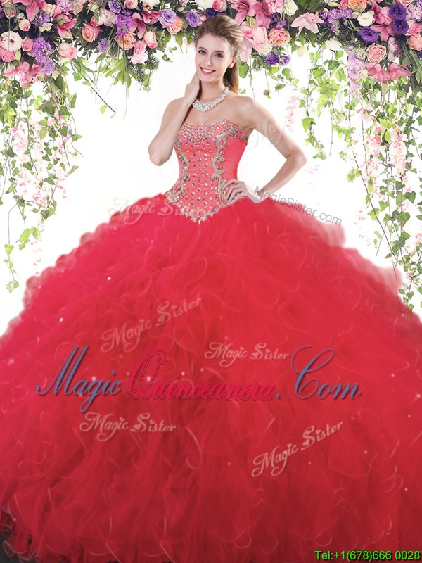 Flare Floor Length Lace Up 15 Quinceanera Dress Red and In for Military Ball and Sweet 16 and Quinceanera with Beading
