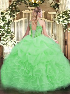 Flare Floor Length Lace Up Sweet 16 Quinceanera Dress Champagne for Military Ball and Sweet 16 and Quinceanera with Beading and Ruffles
