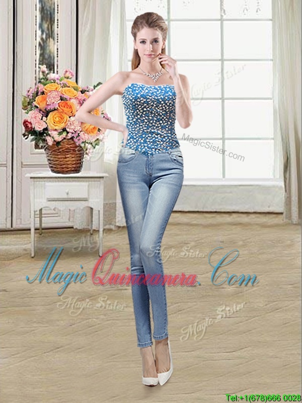 Flare Four Piece Teal Sleeveless Floor Length Beading Lace Up Vestidos de Quinceanera - Magic Quinceanera