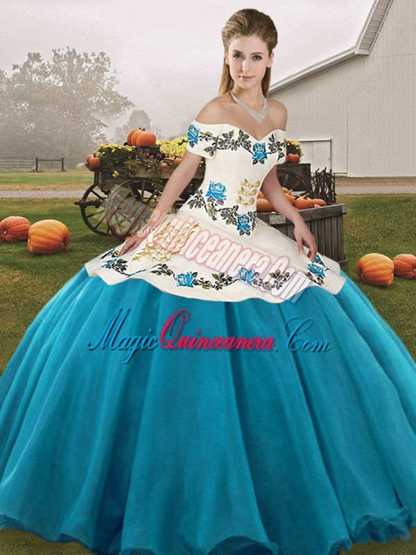, Flare Organza Sleeveless Floor Length Quinceanera Gowns and Embroidery