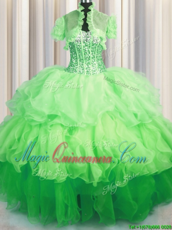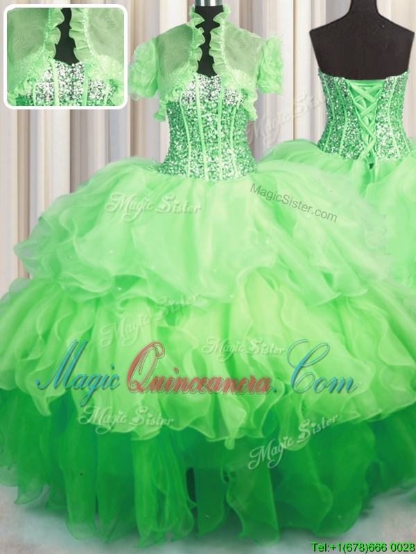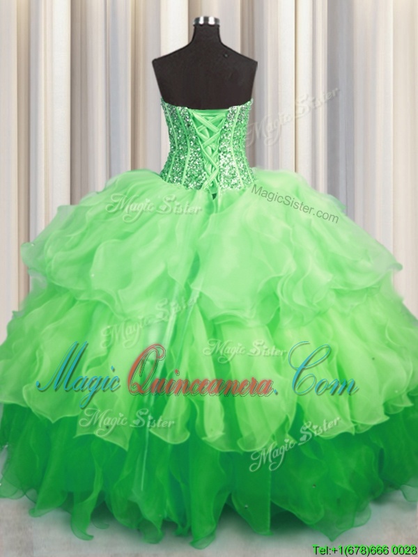 Visible Boning Bling-bling Sleeveless Beading and Ruffles Lace Up 15 Quinceanera Dress