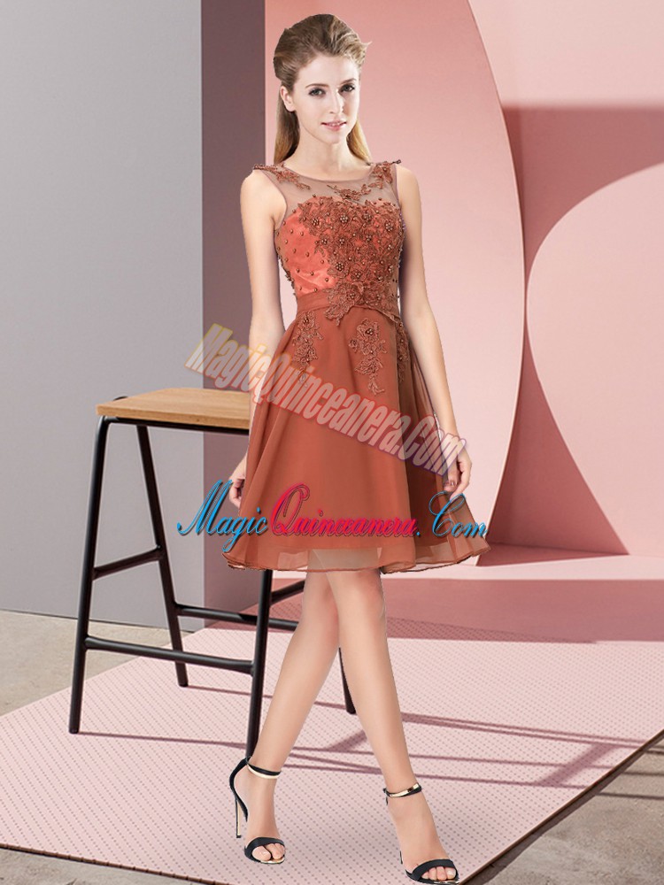 , Flirting Appliques Quinceanera Court Dresses Rust Red Zipper Sleeveless Knee Length