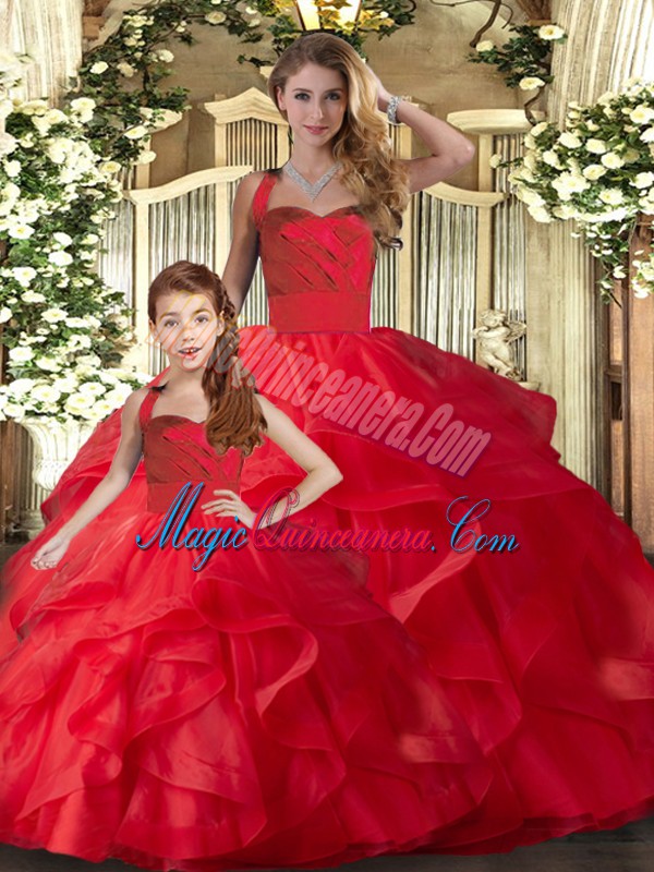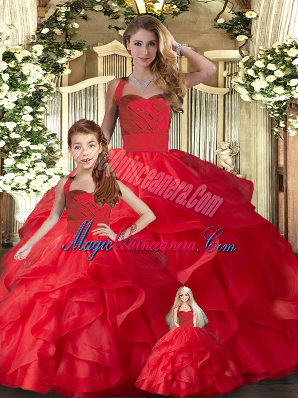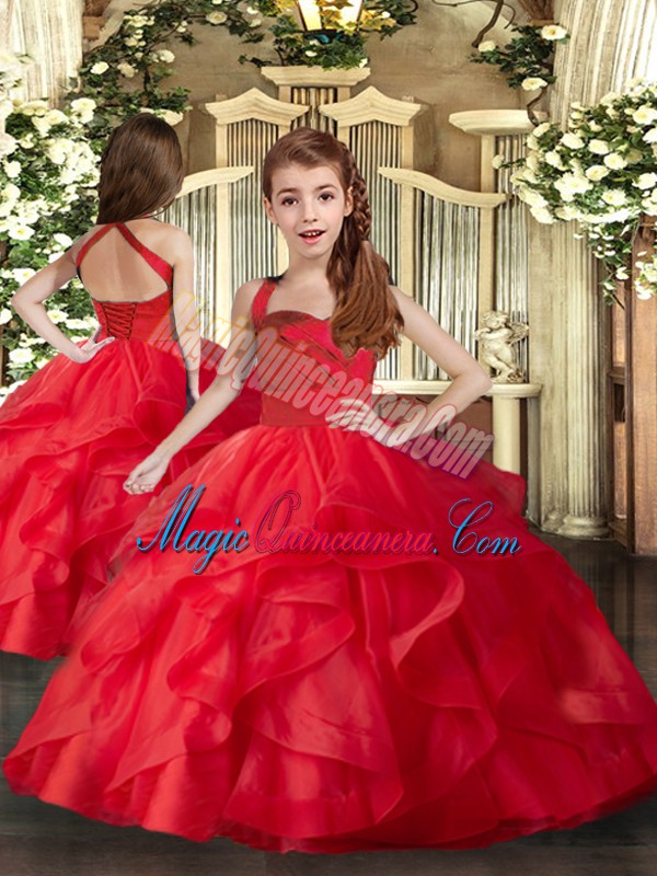 , Flirting Halter Top Sleeveless Tulle Ball Gown Prom Dress Ruffles Lace Up
