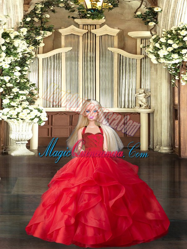 Flirting Halter Top Sleeveless Tulle Ball Gown Prom Dress Ruffles Lace Up