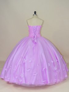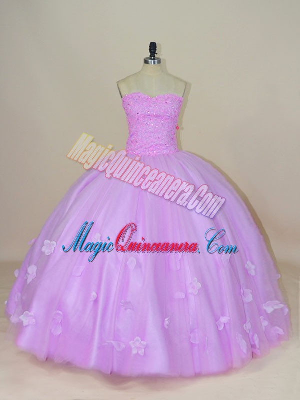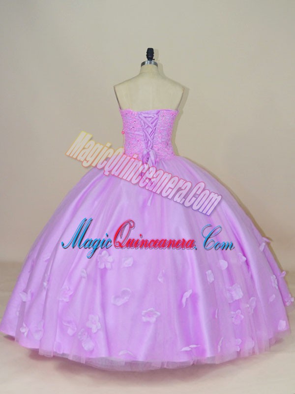 Flirting Lilac Sleeveless Floor Length Hand Made Flower Lace Up Sweet 16 Dress