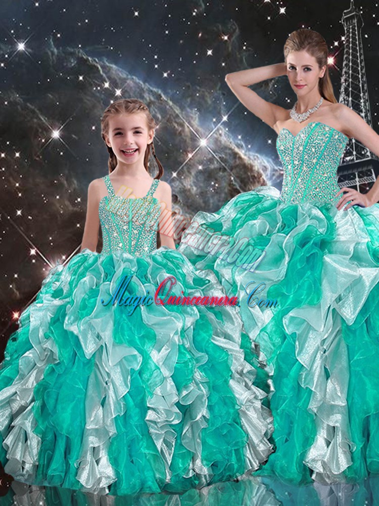 Flirting Sleeveless Organza Floor Length Lace Up Quinceanera Dress in Multi-color with Beading and Ruffles