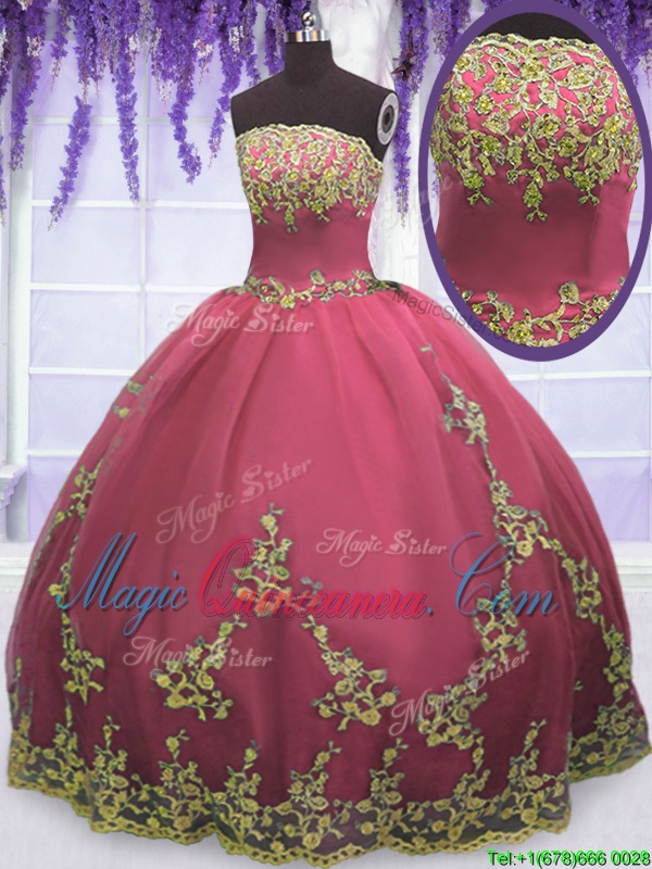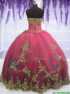 , Flirting Strapless Sleeveless Zipper Sweet 16 Dresses Red Tulle