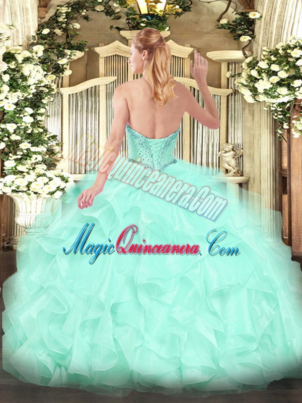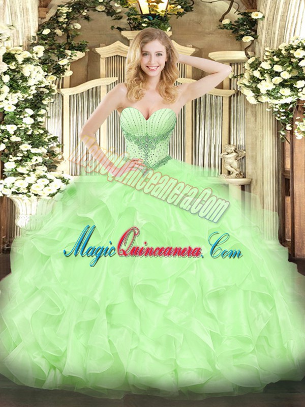 , Flirting Sweetheart Sleeveless Organza Quince Ball Gowns Beading and Ruffles Lace Up