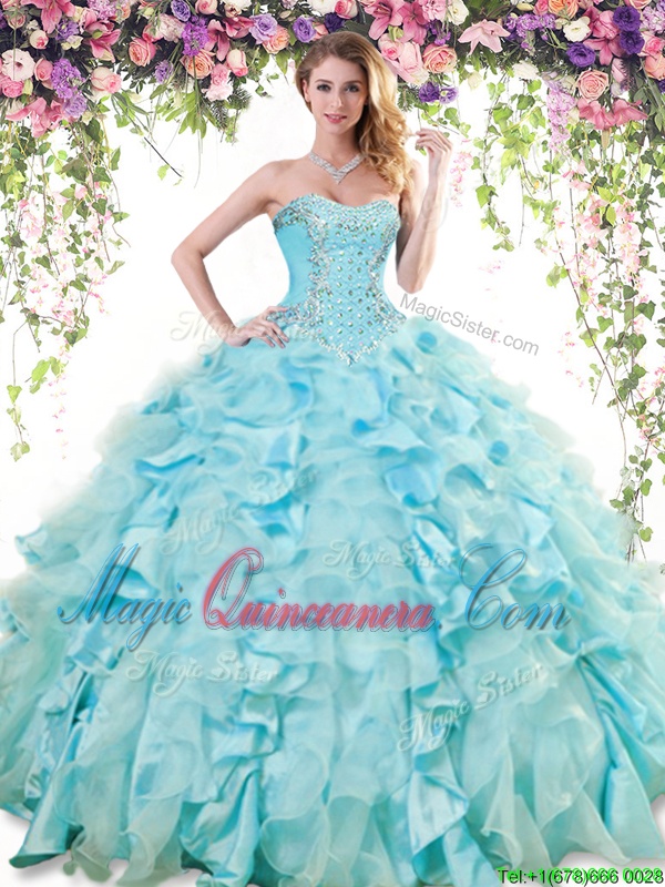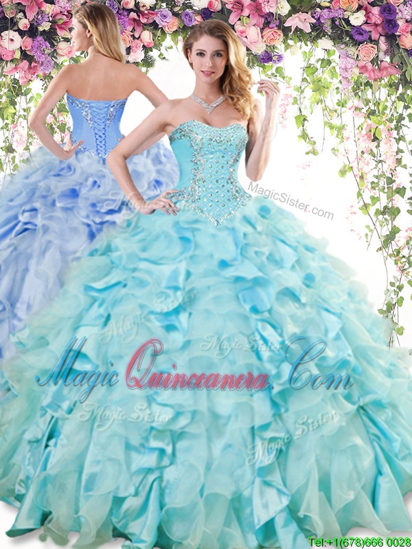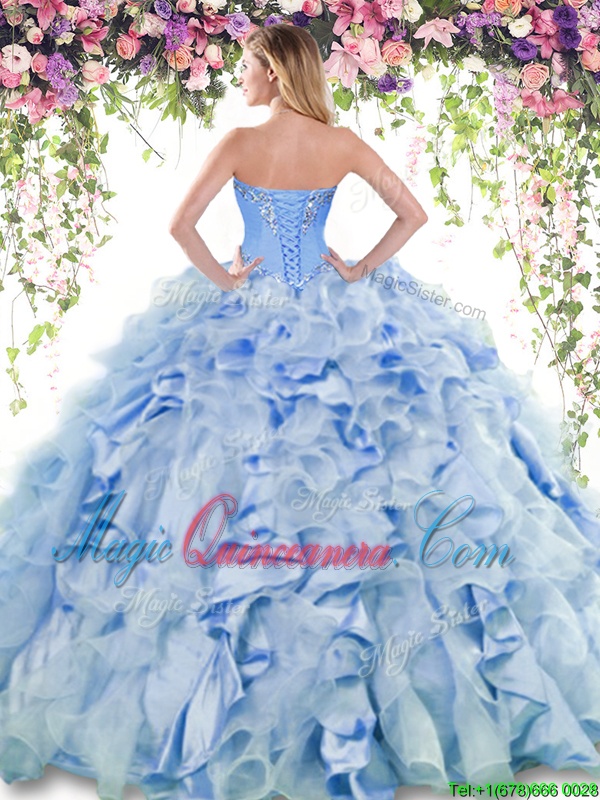 Flirting Sweetheart Sleeveless Quinceanera Gowns Floor Length Ruffles Baby Blue Organza and Taffeta - Magic Quinceanera