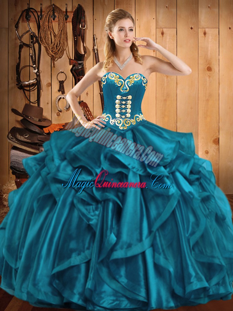 Flirting Teal Sleeveless Organza Lace Up Sweet 16 Dress for Military Ball and Sweet 16 and Quinceanera