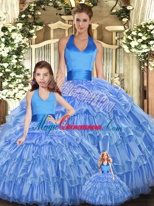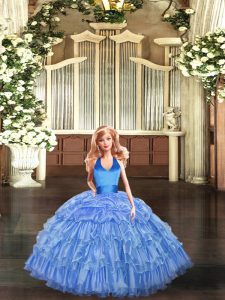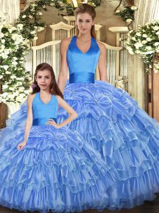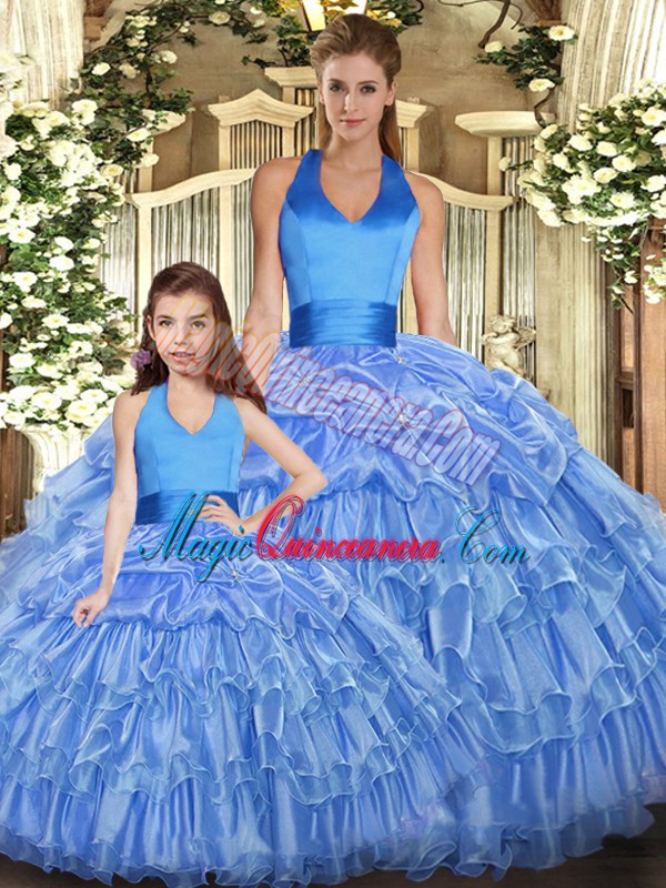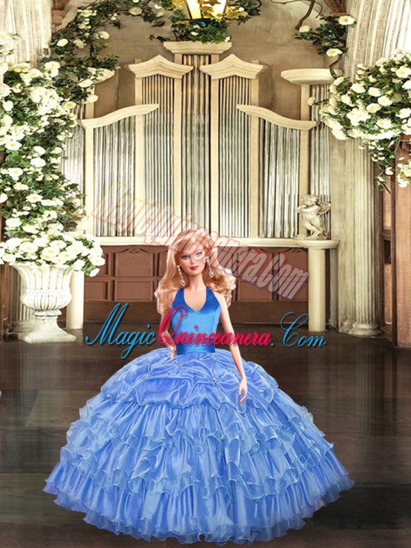 Floor Length Baby Blue 15 Quinceanera Dress Organza Sleeveless Ruffles and Pick Ups
