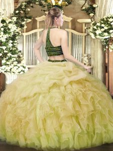 Floor Length Baby Pink Sweet 16 Quinceanera Dress Organza Sleeveless Beading and Ruffles