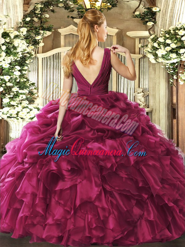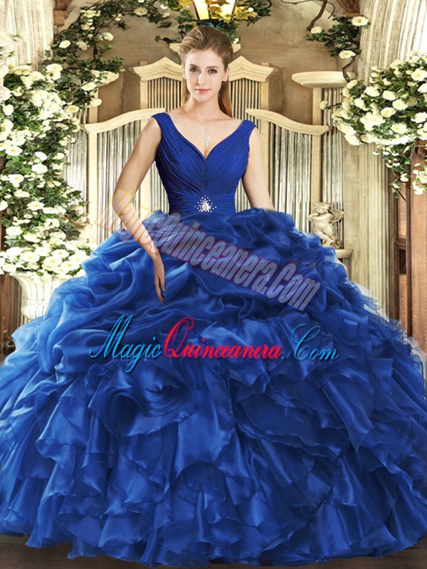 Floor Length Backless 15th Birthday Dress Blue for Sweet 16 and Quinceanera with Beading and Ruffles