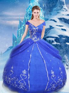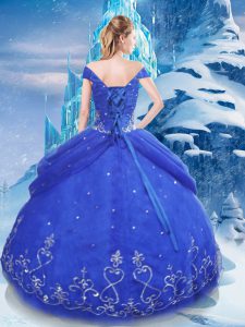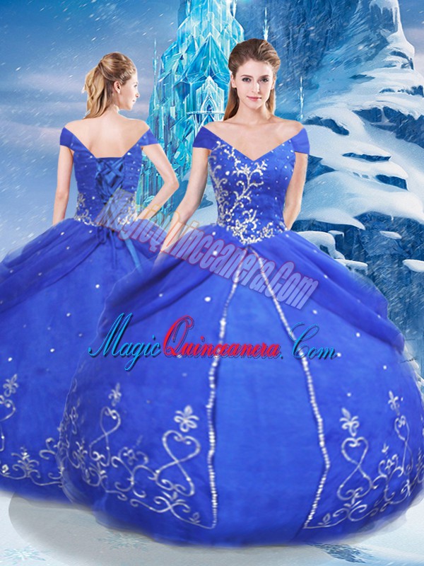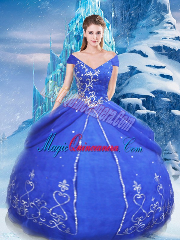 Floor Length Ball Gowns Short Sleeves Blue Quinceanera Dresses Lace Up