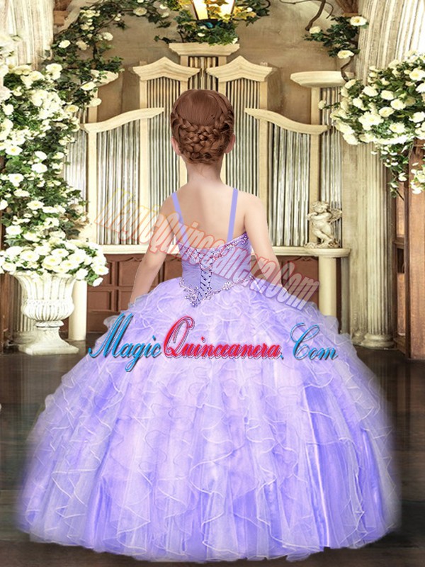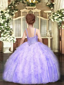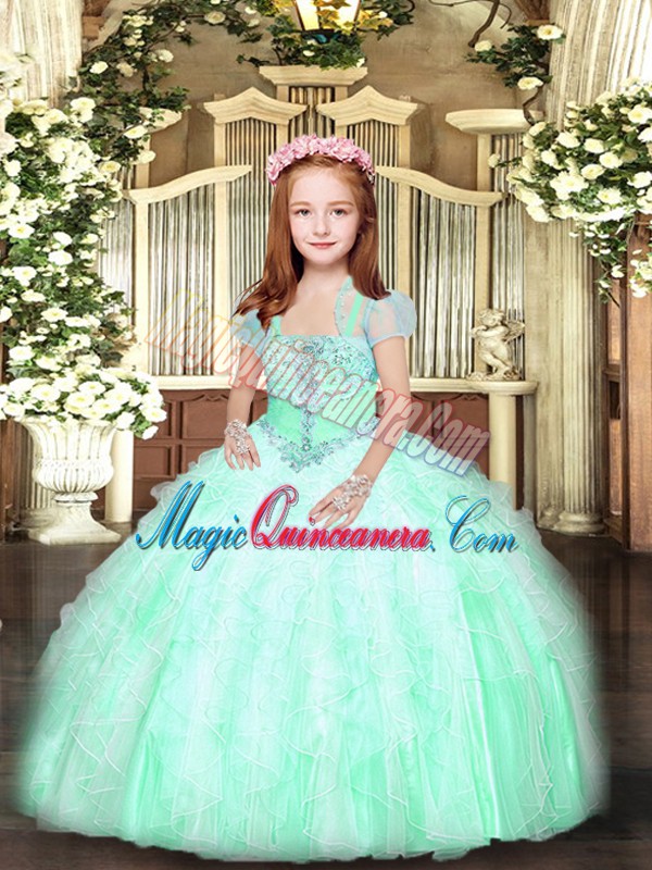 Floor Length Ball Gowns Sleeveless Apple Green Little Girls Pageant Dress Lace Up