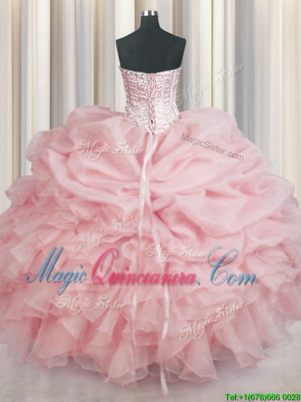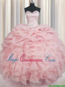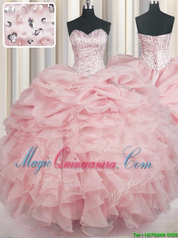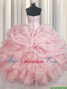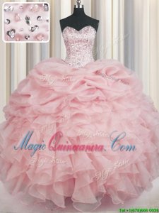 Floor Length Ball Gowns Sleeveless Baby Pink Ball Gown Prom Dress Lace Up
