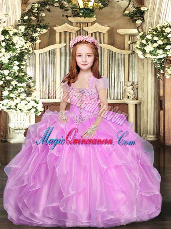 Floor Length Ball Gowns Sleeveless Lilac Little Girl Pageant Dress Lace Up