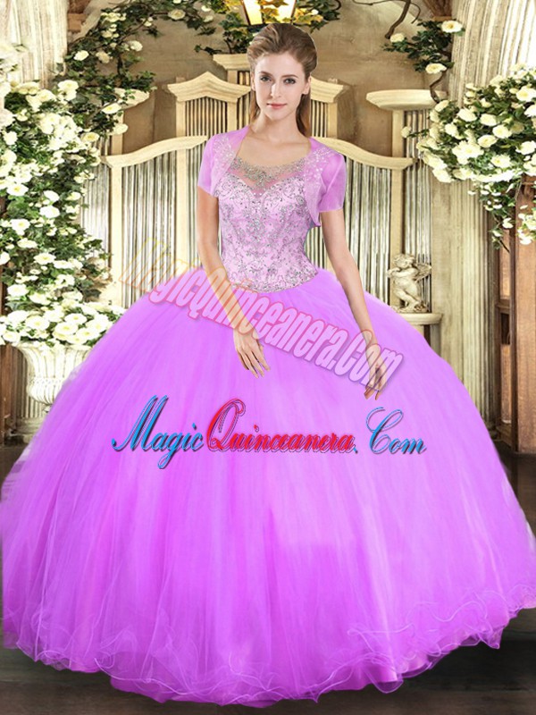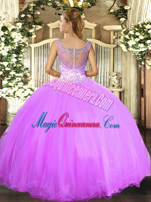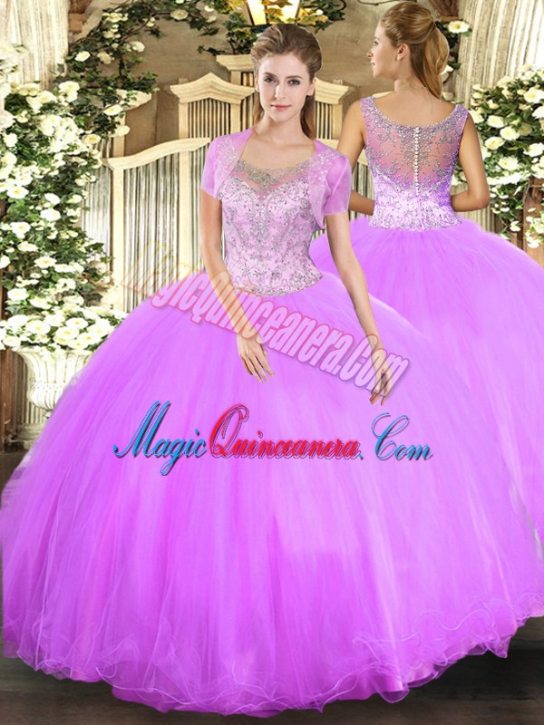 , Floor Length Ball Gowns Sleeveless Lilac Sweet 16 Dress Clasp Handle
