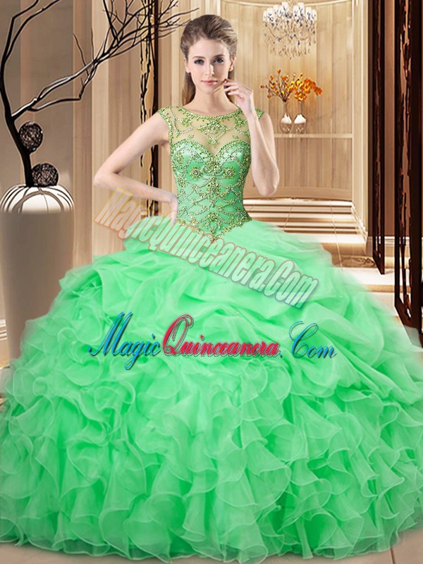 , Floor Length Ball Gowns Sleeveless Quince Ball Gowns Lace Up