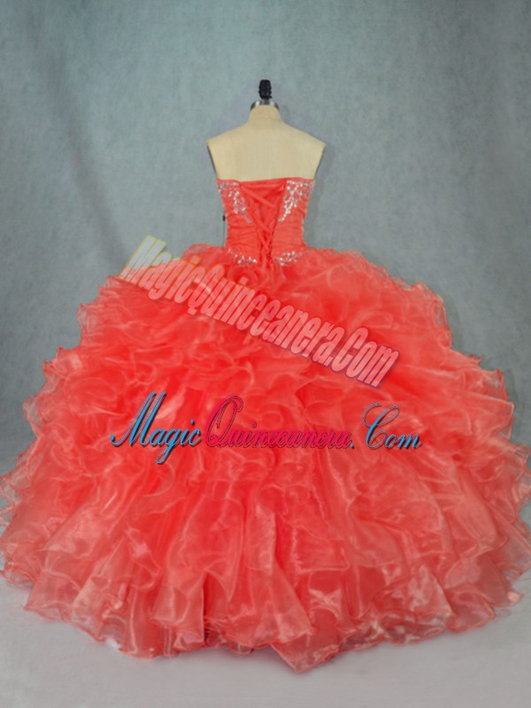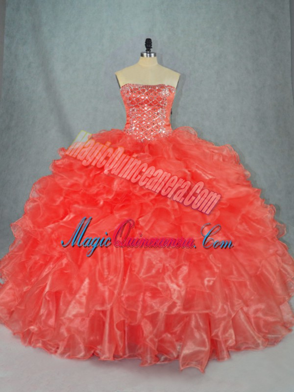 Floor Length Ball Gowns Sleeveless Red Quinceanera Dresses Lace Up