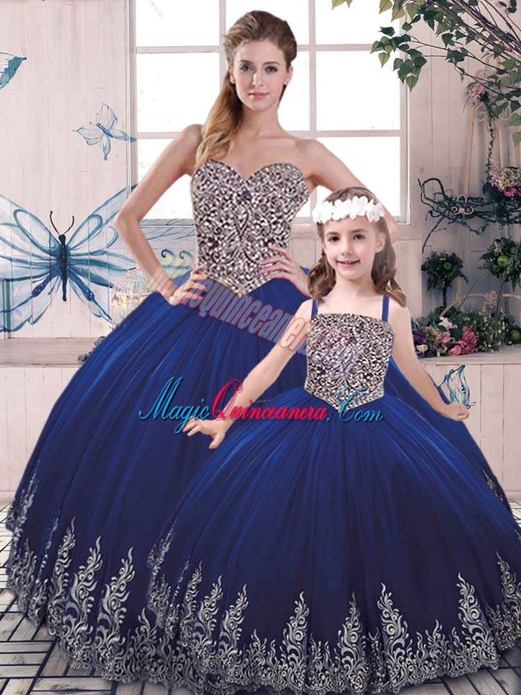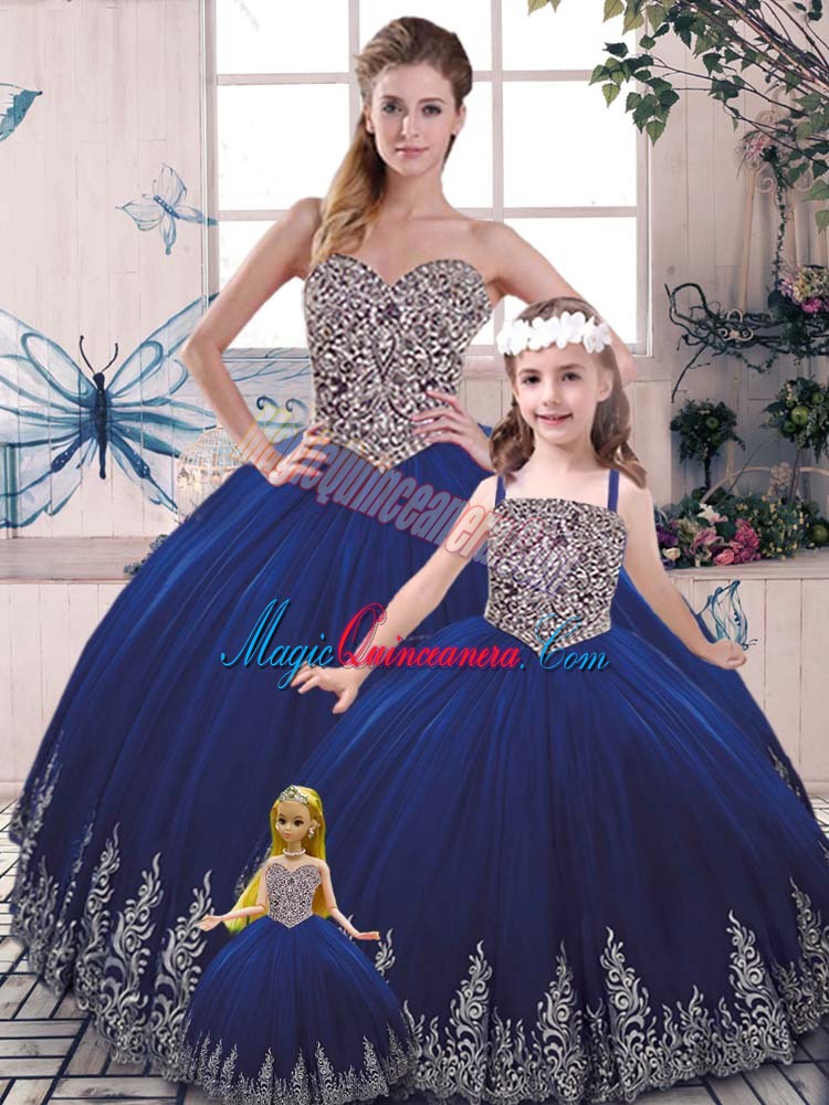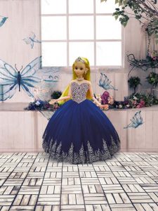 Floor Length Ball Gowns Sleeveless Royal Blue Quinceanera Gown Lace Up