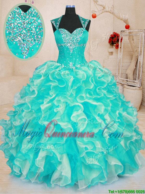 Floor Length Ball Gowns Sleeveless Turquoise 15 Quinceanera Dress Lace Up