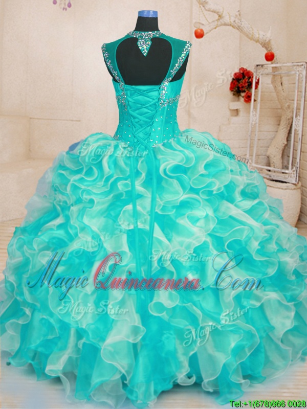 , Floor Length Ball Gowns Sleeveless Turquoise 15 Quinceanera Dress Lace Up
