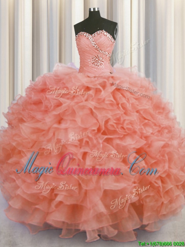 Floor Length Ball Gowns Sleeveless Watermelon Red Sweet 16 Quinceanera Dress Lace Up