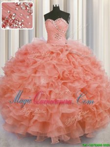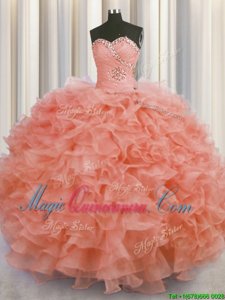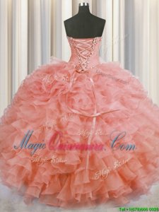 , Floor Length Ball Gowns Sleeveless Watermelon Red Sweet 16 Quinceanera Dress Lace Up