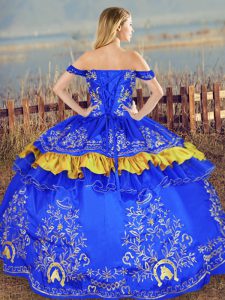 Floor Length Blue 15 Quinceanera Dress Off The Shoulder Sleeveless Lace Up