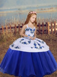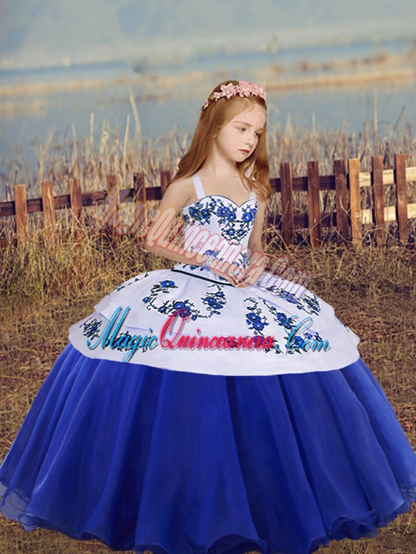 Floor Length Blue Pageant Dress Straps Sleeveless Lace Up