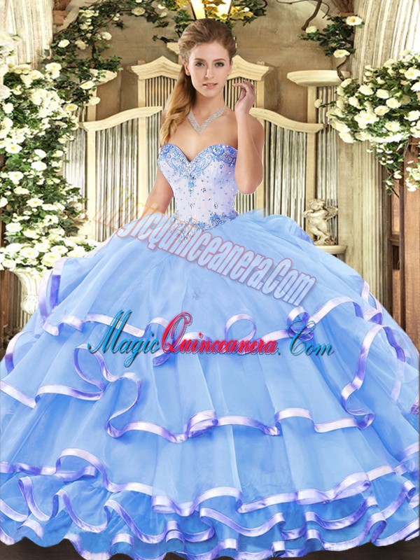 , Floor Length Blue Quinceanera Gown Sweetheart Sleeveless Lace Up