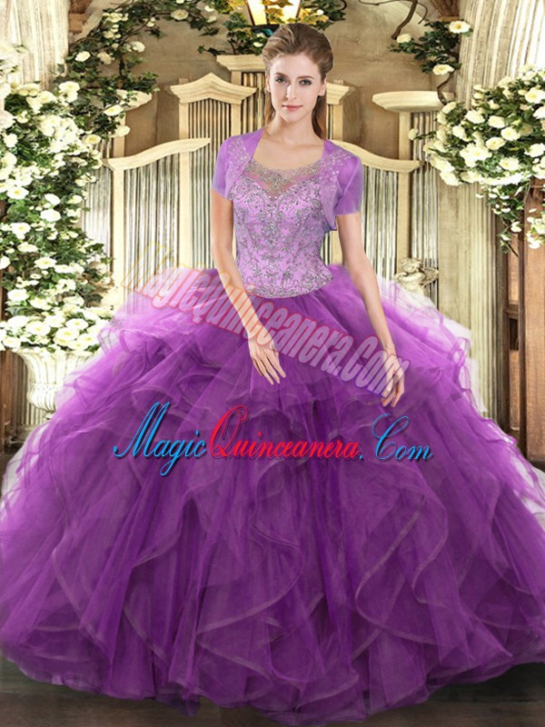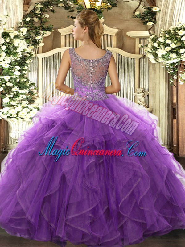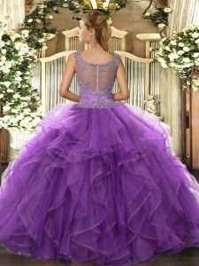 Floor Length Eggplant Purple Ball Gown Prom Dress Scoop Sleeveless Clasp Handle