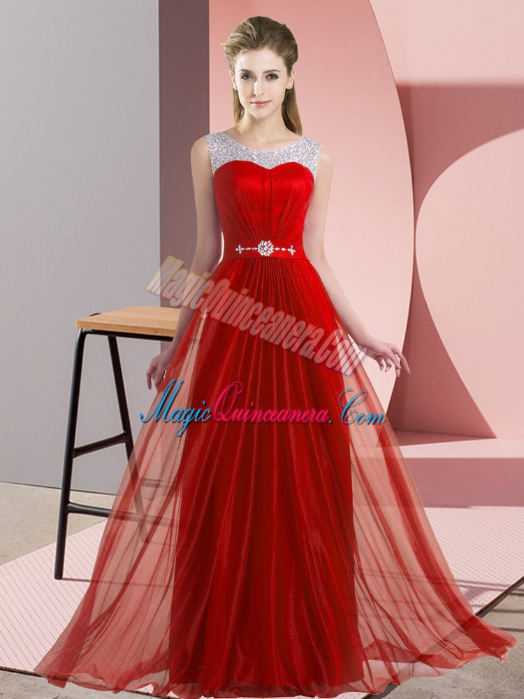 , Floor Length Empire Sleeveless Red Damas Dress Lace Up