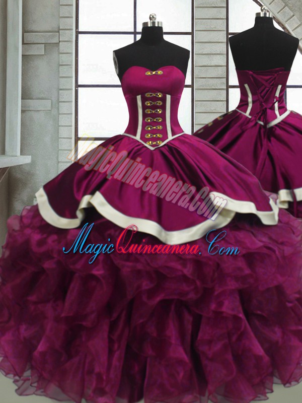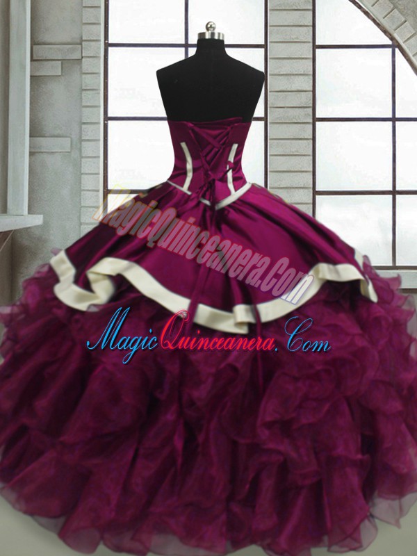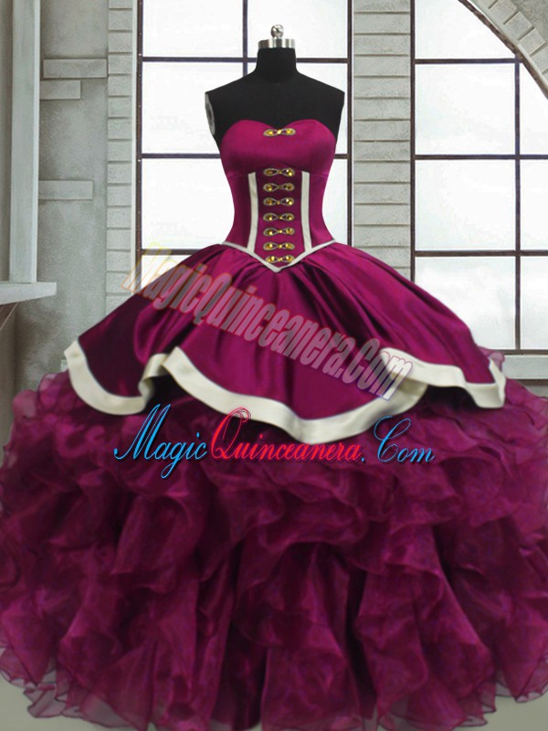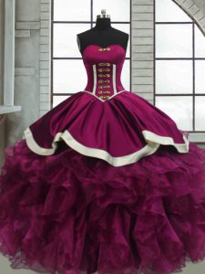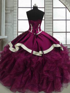 , Floor Length Fuchsia Quinceanera Dress Organza Sleeveless Beading and Ruffles