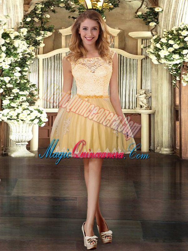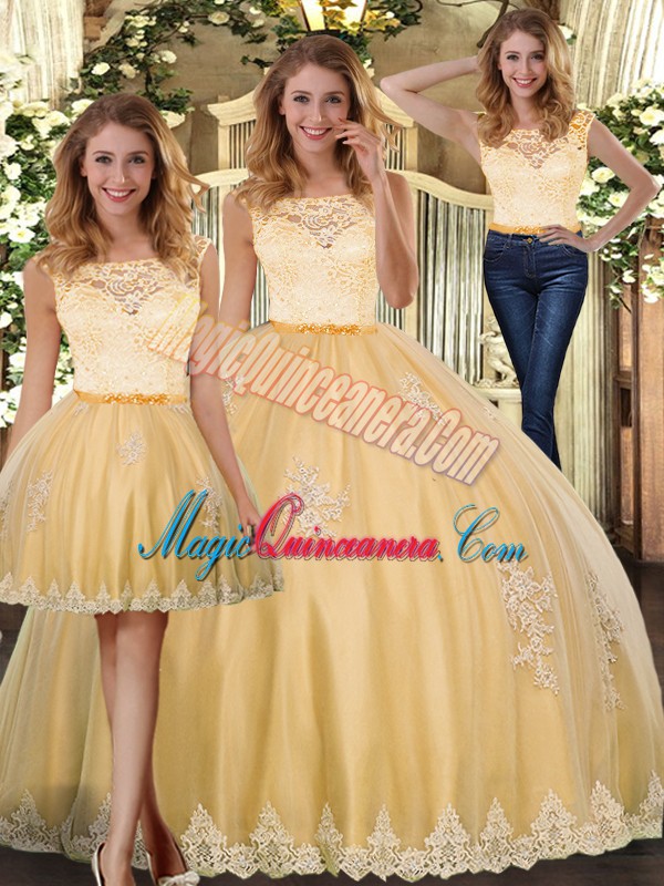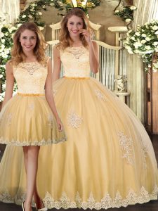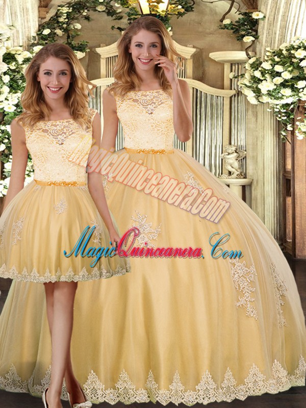 Floor Length Gold 15 Quinceanera Dress Scoop Sleeveless Clasp Handle
