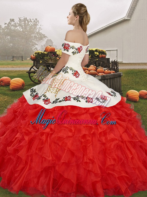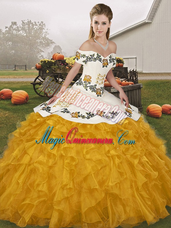 Floor Length Gold Sweet 16 Quinceanera Dress Off The Shoulder Sleeveless Lace Up