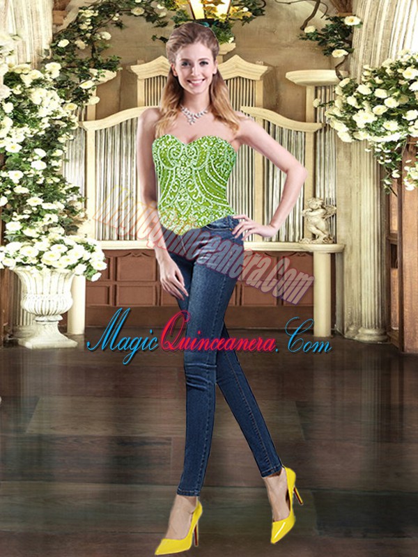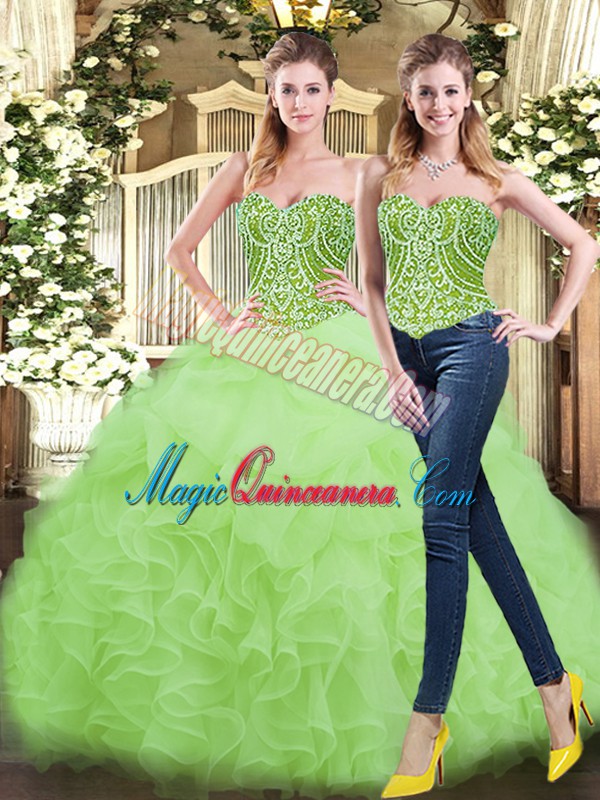 Floor Length Lace Up 15 Quinceanera Dress Yellow Green for Military Ball and Sweet 16 and Quinceanera with Beading and Ruffles