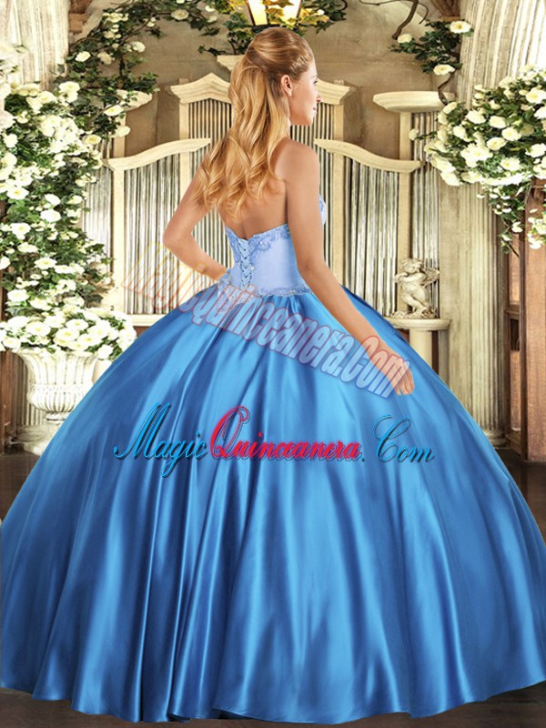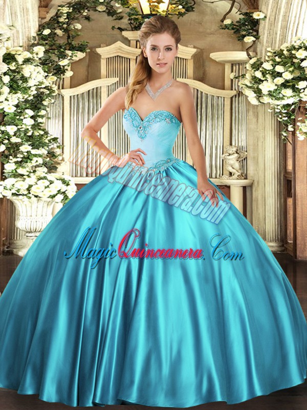 Floor Length Lace Up 15th Birthday Dress Teal for Military Ball and Sweet 16 and Quinceanera with Beading