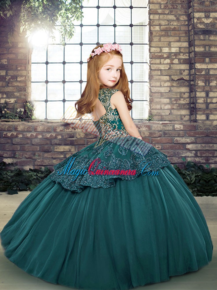 Ball Gowns Pageant Dress for Girls Apple Green Straps Organza Sleeveless Floor Length Lace Up